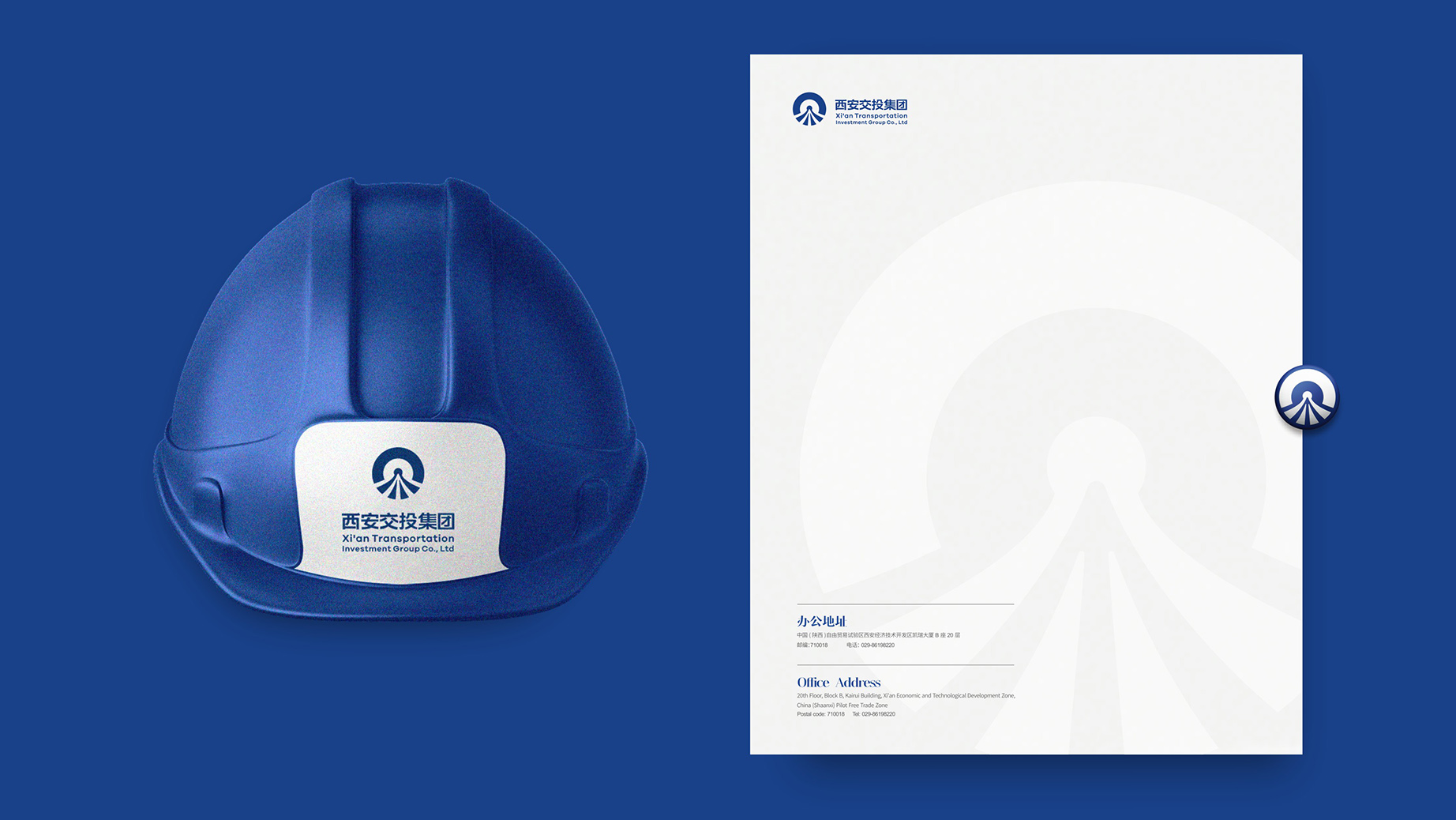 图形中的隧道代表行业属性,代表向心汇聚,寓意公司众志成城,执念前行,也构成了西安交投的超级符号。