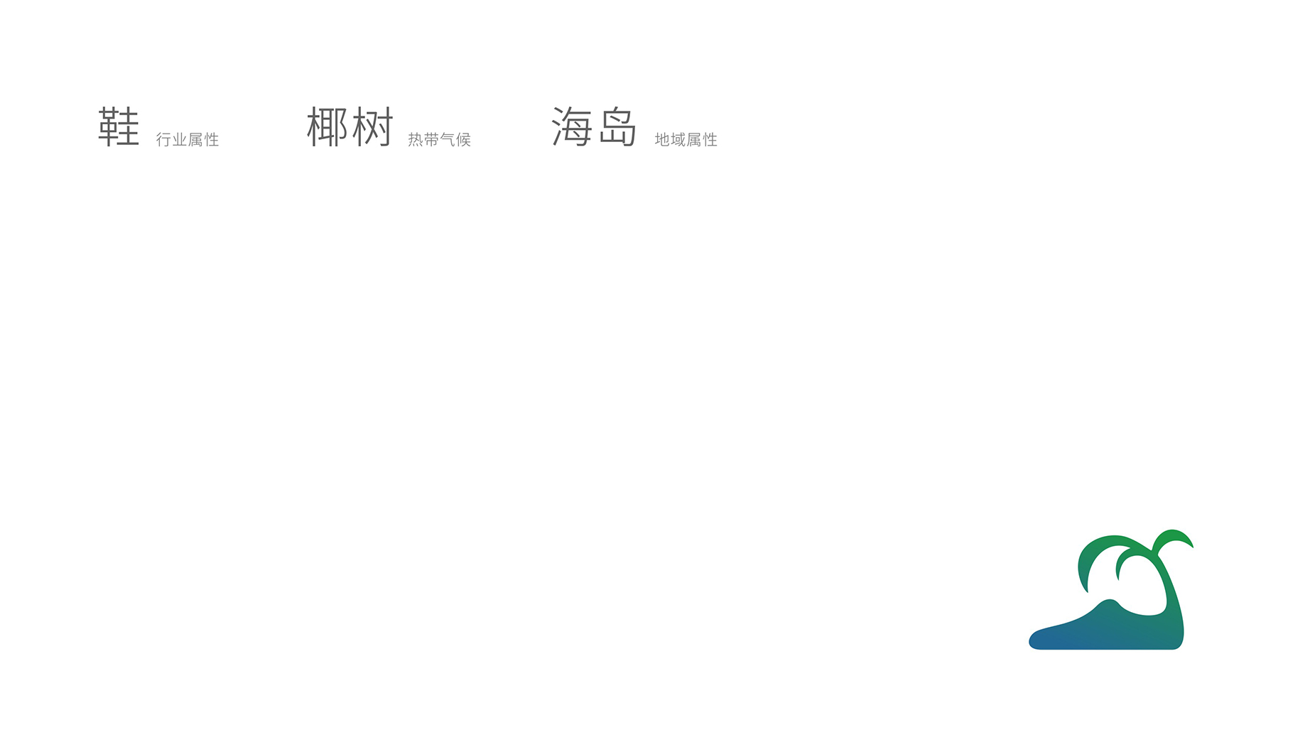 马来西亚是一个岛国,一年四季都是夏天,风景宜人,我们从鞋的造型出发,结合岛的造型,并融入椰树元素,让品牌更具地域属性,让人一眼看上去有一种清凉的感觉。英文字体也是设计过的字体,整体风格清新明快,让人耳目一新。